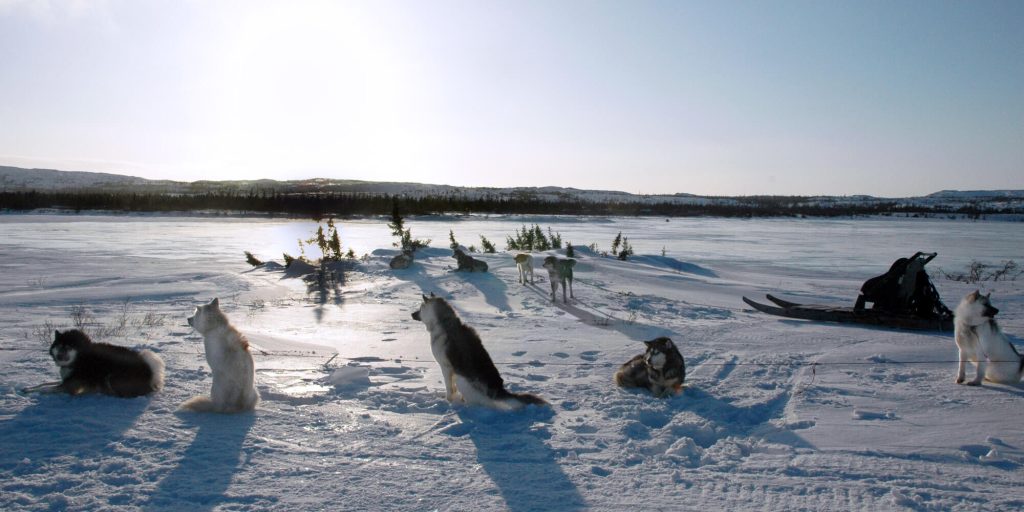 For hundreds of years. the Inuit travelled over these snow-covered lakes and tundra on sleighs drawn forward by dog teams splayed in a fan-hitch. This is your opportunity to follow in their path. Escape the modern world's cacophony accompanied by your guide, to glide over a sparkling landscape.
